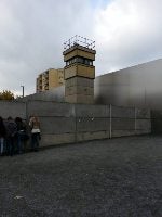 Hier zie je een wachttoren en een deel van de Berlijnse muur. Ik heb deze foto gemaakt tijdens de fietstocht. Ik vond dat wel leuk en interessante moment omdat het over de Berlijnse muur ging. We hadden ook een aardige gids die alles duidelijk uitlegde hoe alles was gegaan in de tijd van de Berlijnse muur.